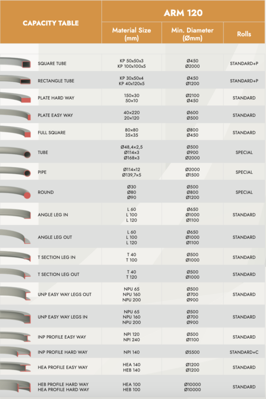 ARM-120 is our Medium Level 3 Roll Hydraulic Profile and Pipe Bending Machine.