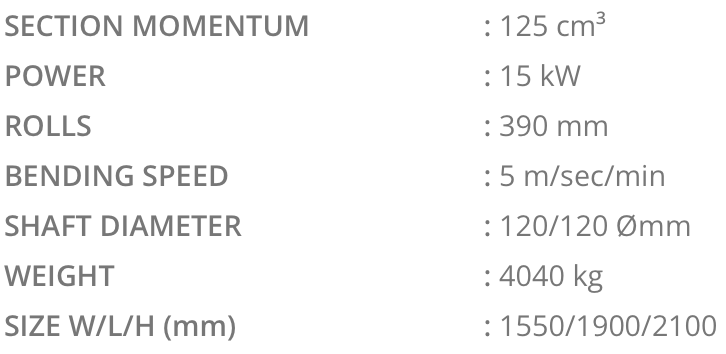 - Three seperated rolls driven with hydraulic motor and planetary gear box