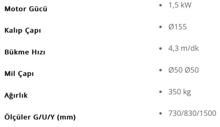 Tabloda belirtilen değerler 240N/ mm2 akma sınırı olan çeliğe göre verilmiştir. M-Bend bu değerleri haber vermeksizin değiştirme hakkına sahiptir. Kapasite tablosunda yer alan ölçülerin tümü milimetre cinsindendir. Daha fazla bilgi için müşteri hizmetleri yetkililerimiz ile iletişime geçiniz
