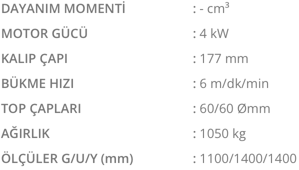 - Dairesel, elips, oval şekillerde ve çeşitli çaplarda malzeme bükme imkânı